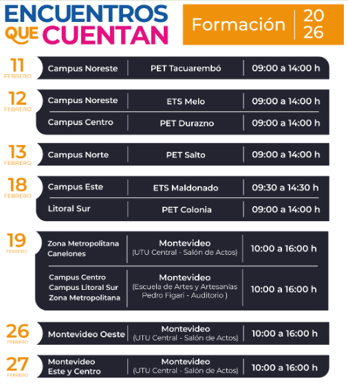 Las instancias se desarrollan en todos los Campus, se realizarón en los departamentos de Durazno, Colonia, Maldonado, Melo, Montevideo, Salto y Tacuarembó. Algunas de estas instancias ya se han realizado, mientras que otras continúan desarrollándose, dando continuidad al proceso formativo en las distintas comunidades educativas del país.
