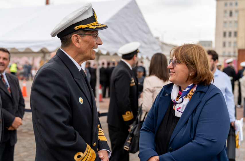 Estuvieron presentes autoridades y representantes de la Armada, Fuerza Aérea y el Ejército, delegaciones diplomáticas, embajadores, subsecretarios, el presidente de ANEP, Pablo Caggiani, la directora de la Escuela Técnica Superior Marítima, Carolina Mazetta, representantes de instituciones civiles y familiares.