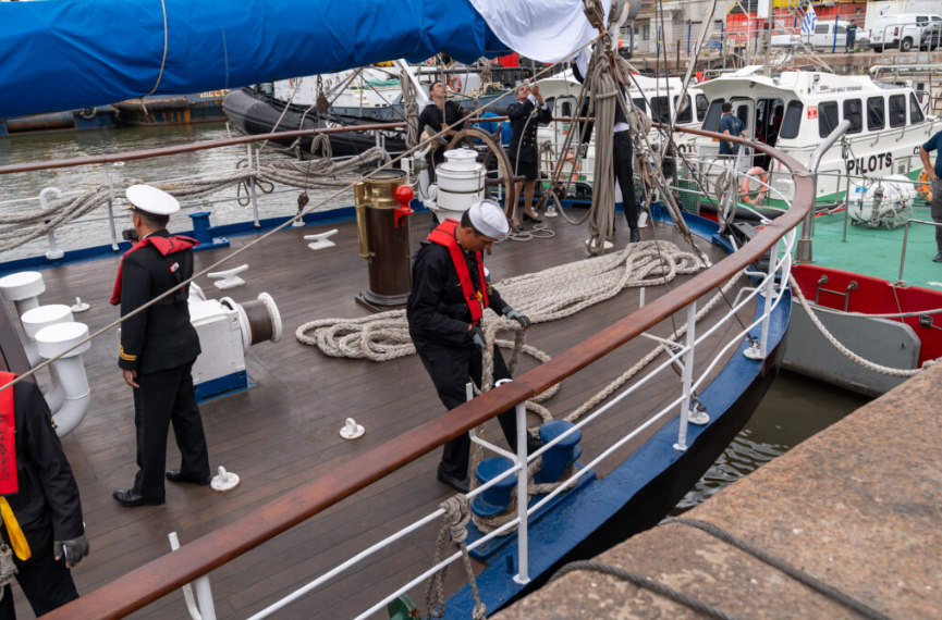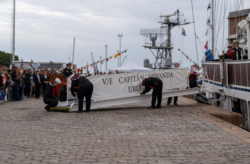 En un acto protocolar, del que participaron ministros, autoridades militares y representantes diplomáticos extranjeros, entre otros invitados, este lunes emprendió una nueva travesía el emblemático buque uruguayo que recalará en varios puertos alrededor del mundo y que tendrá, entre sus miembros, al maquinista naval, Nicolás D´ Angelo.