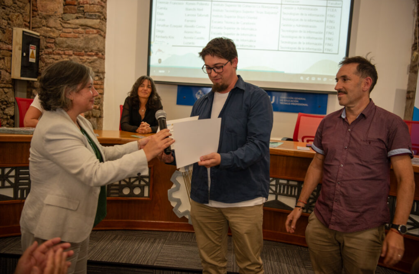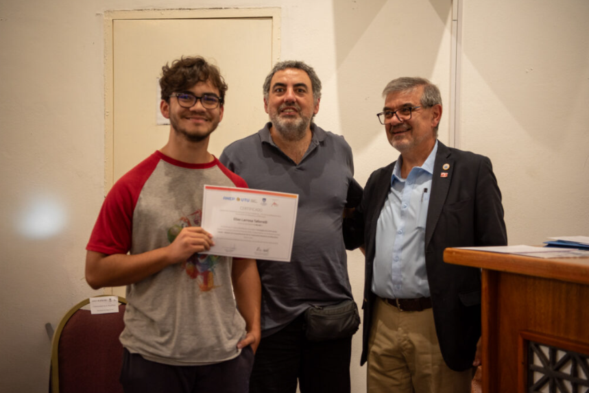 Como cierre del evento, los profesores Javier Pérez y Santiago Prieto recibieron un reconocimiento por parte de los dos decanos. A su vez, los estudiantes que culminaron esta experiencia recibieron un certificado de aprobación. «Yo sabía que entre la UTU y la Universidad había un gran escalón en cuanto a la matemática, debido a que se abordaban temas similares pero con mayor profundidad. Esto me dio una visión distinta de la matemática, porque se acercaba más a ejercicios de la facultad», expresó la egresada Camila Luzardo. También destacó la base que le dejó el programa, que le permite avanzar a otro ritmo en sus estudios terciarios gracias a los créditos obtenidos y a los conocimientos adquiridos, así como al estudio autónomo que implica el acceso a la universidad.