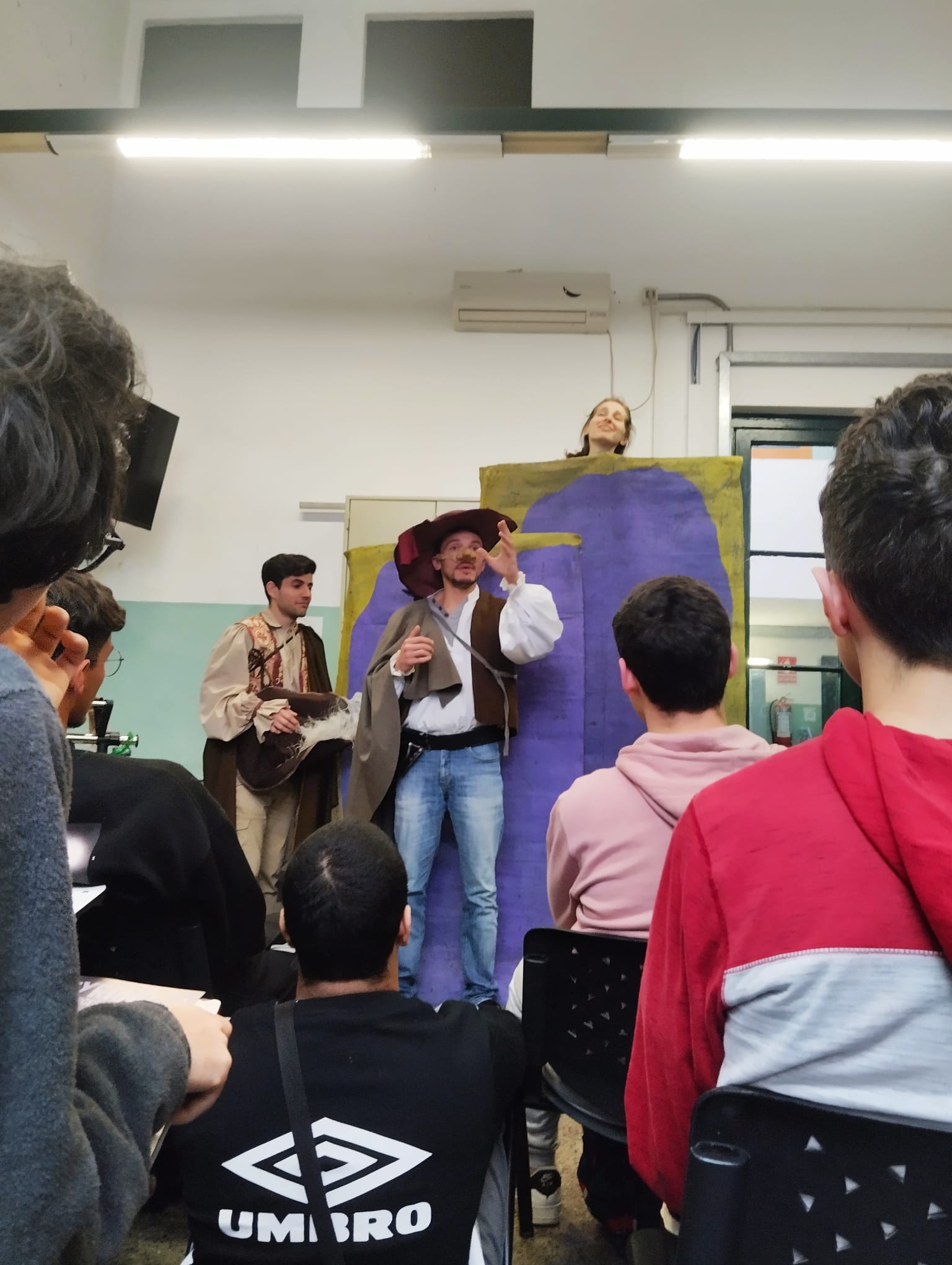 En base a la iniciativa y gestión de la Biblioteca, Teatro en el Aula nos visita hace años, mostrándole a generaciones enteras de estudiantes que han pasado por el Instituto parte de la literatura universal. Siendo para muchos, su primer acercamiento a las artes escénicas. Después de la función, se realiza un foro de intercambio donde los estudiantes expresan opiniones e inquietudes. La presente actividad fué un extracto de «Cyrano de Bergerac», adaptación de la obra original de Edmond Rostand. Actividad maravillosa, rebosante de alumnos, docentes y funcionarios, dicha actividad estuvo a cargo de la Lic. Verónica Lourenco